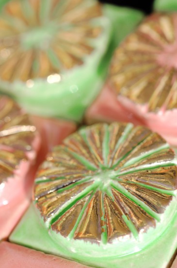 These tiles are handmade and fired at 1200 degrees so they are suitable for wet areas and floors. We can also manufacture individual forms in compliance with you wishes and even cladding for columns in every color and size.