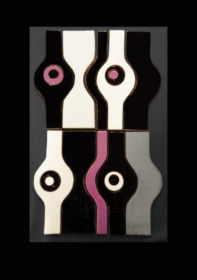 Tiles need not be square – my salamander tiles are a real eyecatcher! Homogenous 70s style forms decorate the wall.